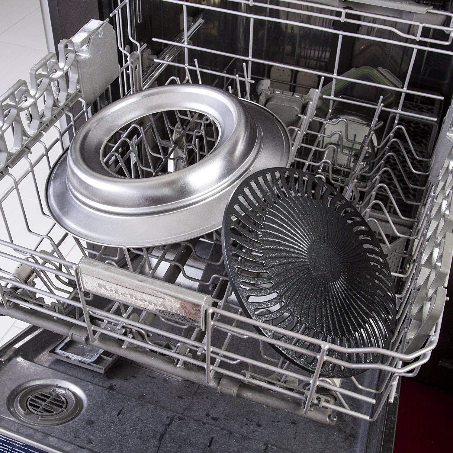 - It comes with an integrated drip pan that catches excess grease and when filled with water, it keeps food moist and smoke-free.